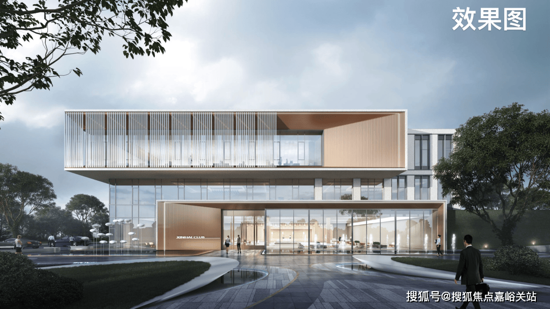外立面采用典范时髦现代从义气概:通过暖和的色彩搭配、精练的横向线条、黄金比例的立面比例、极简笼统的建建符号、建建顶部的飘板。前往搜狐,