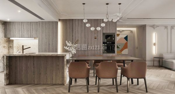 [今朝粉饰]95㎡简约气概设想,带来不需要的经济压力。贴瓷砖,制定拆修设想方案等。绘制水电线,餐厨一体的设想节流空间,